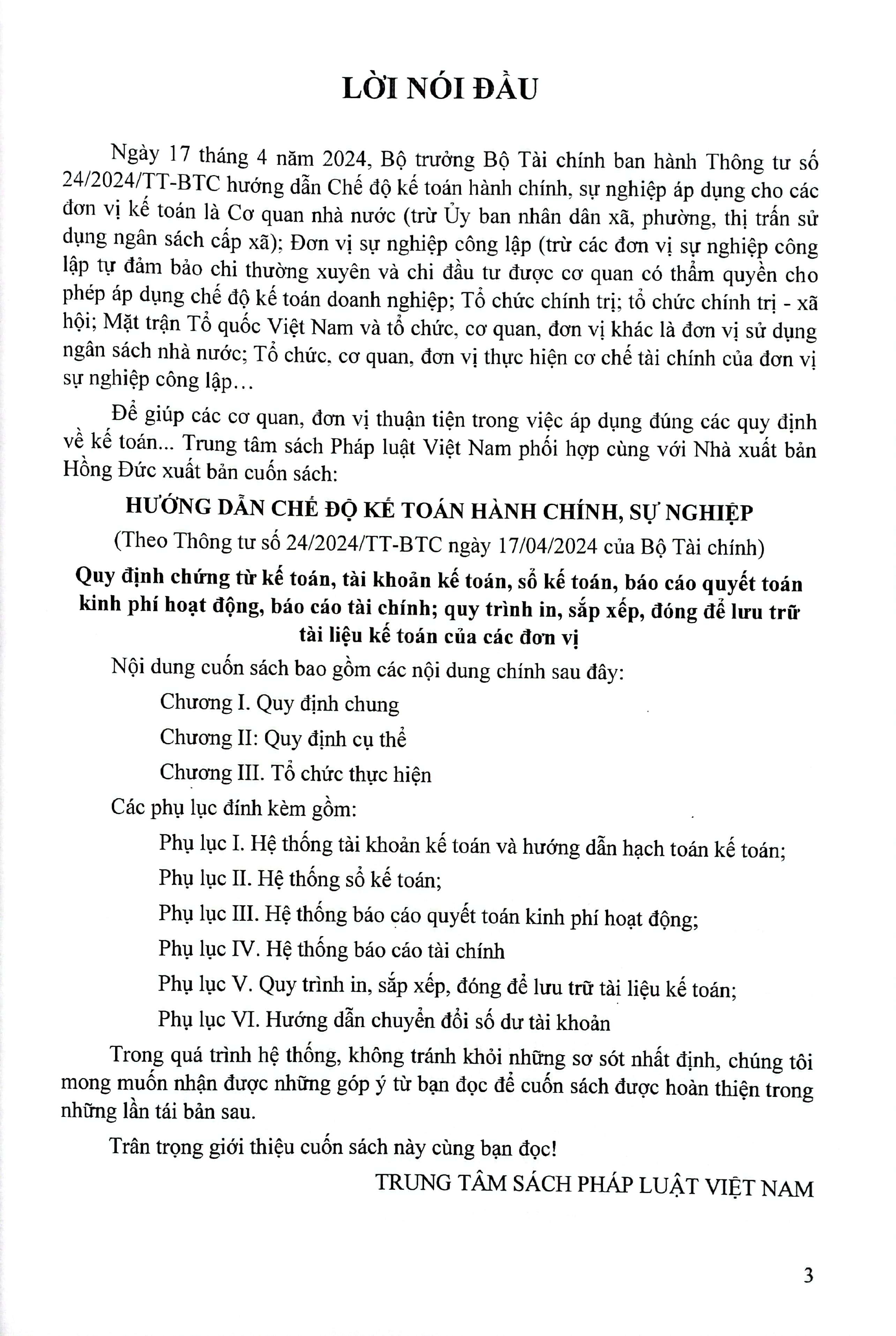 CHẾ ĐỘ KẾ TOÁN HÀNH CHÍNH, SỰ NGHIỆP (theo Thông tư số 24/2024/TT-BTC ngày 17 tháng 4 năm 2024 của Bộ Tài chính)
