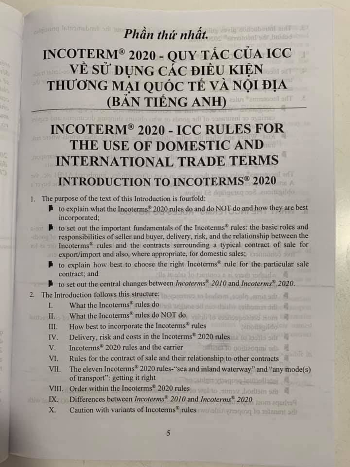 Phần thứ nhất. INCOTERM 2020 - QUY TẮC CỦA ICC VỀ SỬ DỤNG CÁC ĐIỀU KIỆN THƯƠNG MẠI QUỐC TẾ VÀ NỘI ĐỊA (BẢN TIẾNG ANH)