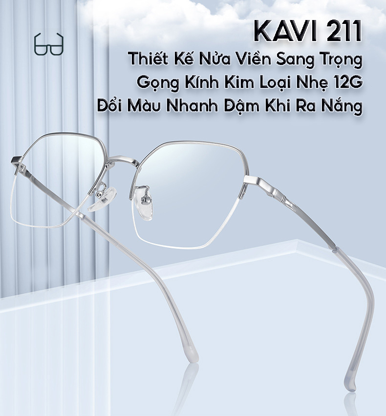 KAVI 211 - Kính Đổi Màu Khi Ra Nắng Gọng Kim Loại Nửa Viền Cao Cấp Dáng Lục Giác Đặc Điểm Nổi Bật Kính KAVI Kavi211 • Mắt kính cao cấp bằng hợp chất của