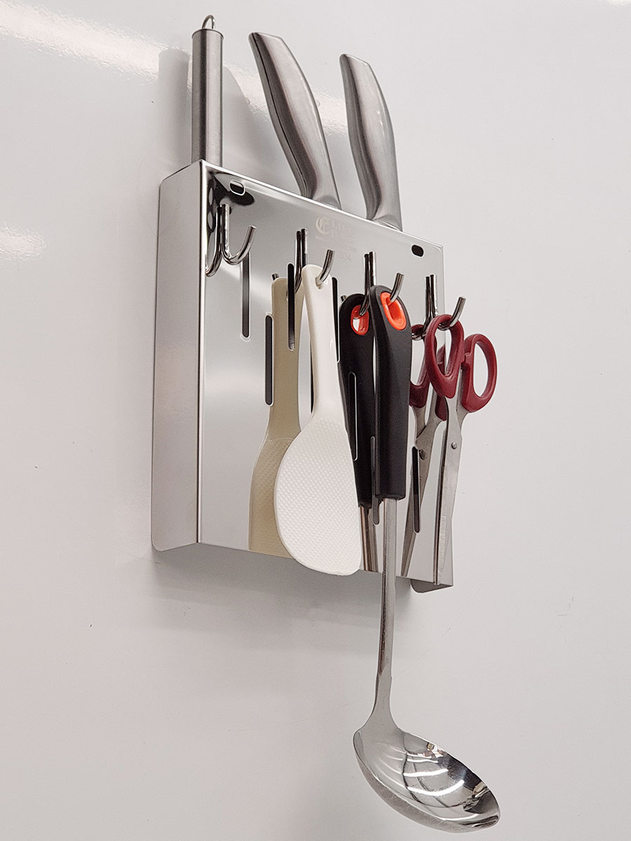 Mô tả chi tiết: Giá treo dụng cụ nhà bếp đa năng giúp bạn sắp xếp gọn gàng các vật dụng như dao, kéo, muỗng, thìa, phới lồng, bàn chải rửa chén, và nhiều loại