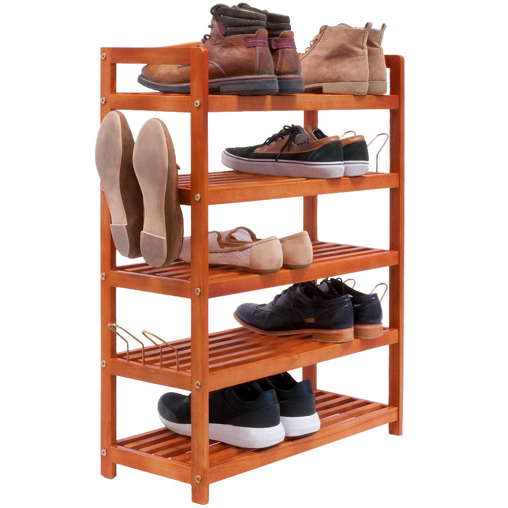 Kệ giày dép gỗ tự nhiên có móc sắt cao 5 tầng rộng 60cm #kedep #kegiay #kedegiaydep
