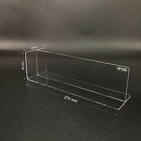 Kệ mica chữ T Enter để bàn là sản phẩm làm từ Mica Đài Loan, dùng làm vách ngăn sản phẩm trên kệ hàng nhằm phân chia từng loại sản phẩm riêng biệt, gọn gàng. Các loại kệ hàng nên dùng vách ngăn mica này đảm bảo việc trưng bày kệ hàng đẹp, bắt mắt, phân chia nhóm sản phẩm riêng biệt từ đó giúp khách hàng dễ nhận biết và phân biệt nhóm hàng hoá cũng như giá cả của từng sản phẩm.