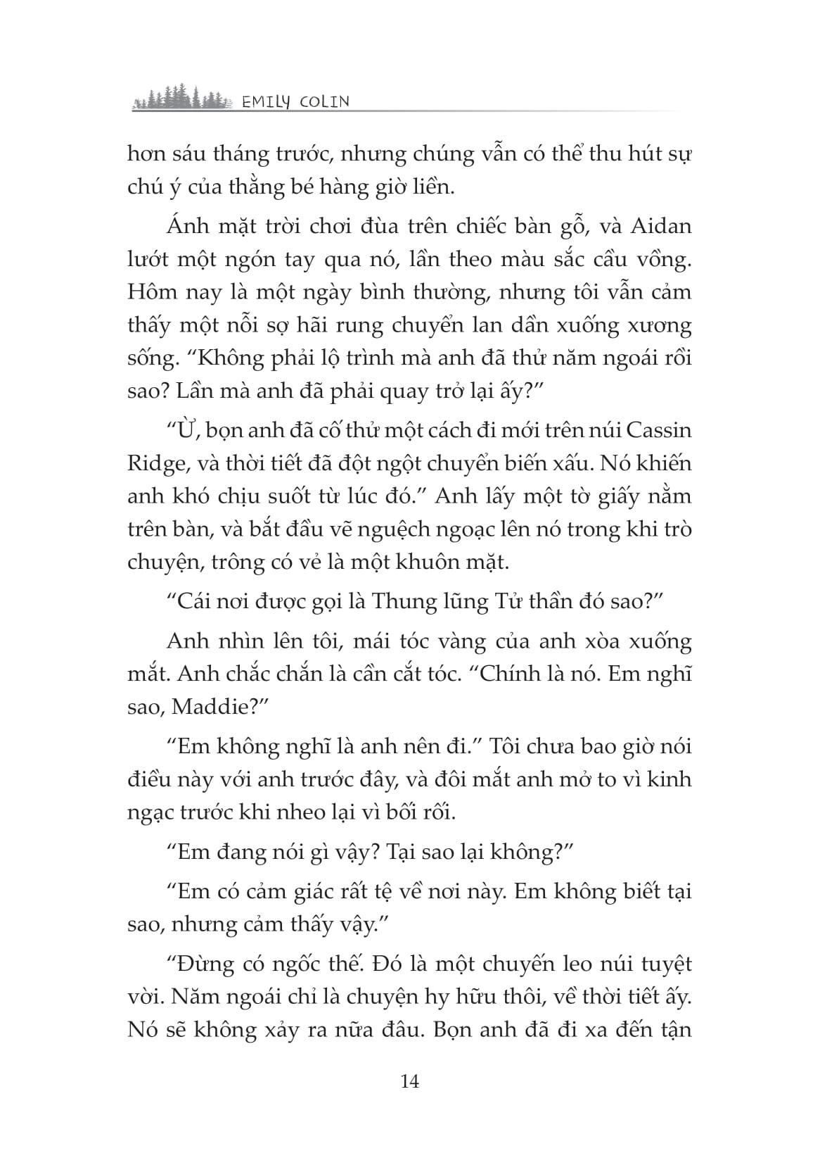 “Tôi lại thiếp đi khi đang suy nghĩ về cảm giác khi có được mọi thứ bạn muốn, chỉ để đánh mất nó… và biết điều bạn mong muốn, nhưng lại không có nó. Suy cho cùng, Aidan James và tôi quả là hai kẻ đối lập. Tất nhiên chúng tôi cũng còn một sự khác biệt quan trọng khác nữa: Tôi vẫn đang còn sống.”
