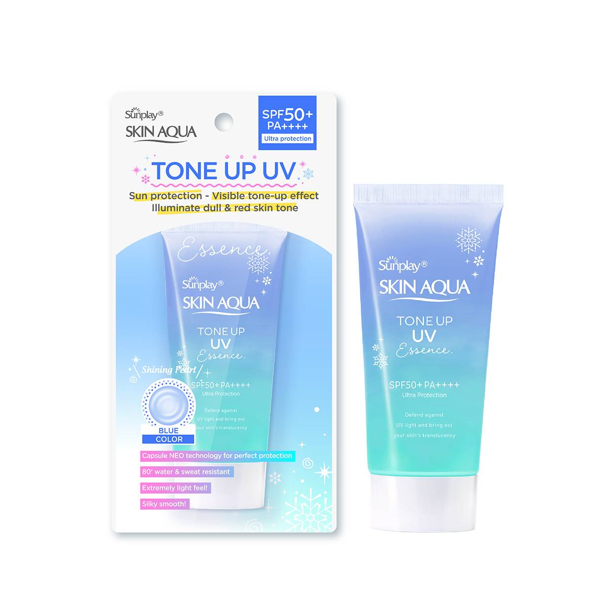 ✨Kem chống nắng nâng tông Skin Aqua Tone up Blue cho da vàng có khuyết điểm đỏ, dạng tinh chất Sunplay Skin Aqua Tone Up UV Essence Blue SPF 50+ PA++++ 50g