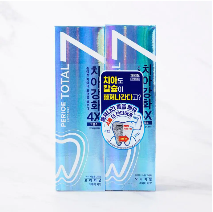 KEM ĐÁNH RĂNG PERIOE TOTAL7 INTENSE REPAIR vị nguyên bản bảo vệ men răng gấp 4 lần nhờ công thức độc quyền bổ sung canxi và phospho, lấp đầy khoảng trống ở răng bị hư hỏng, hạn chế tình trạng sâu răng và bị ố màu.