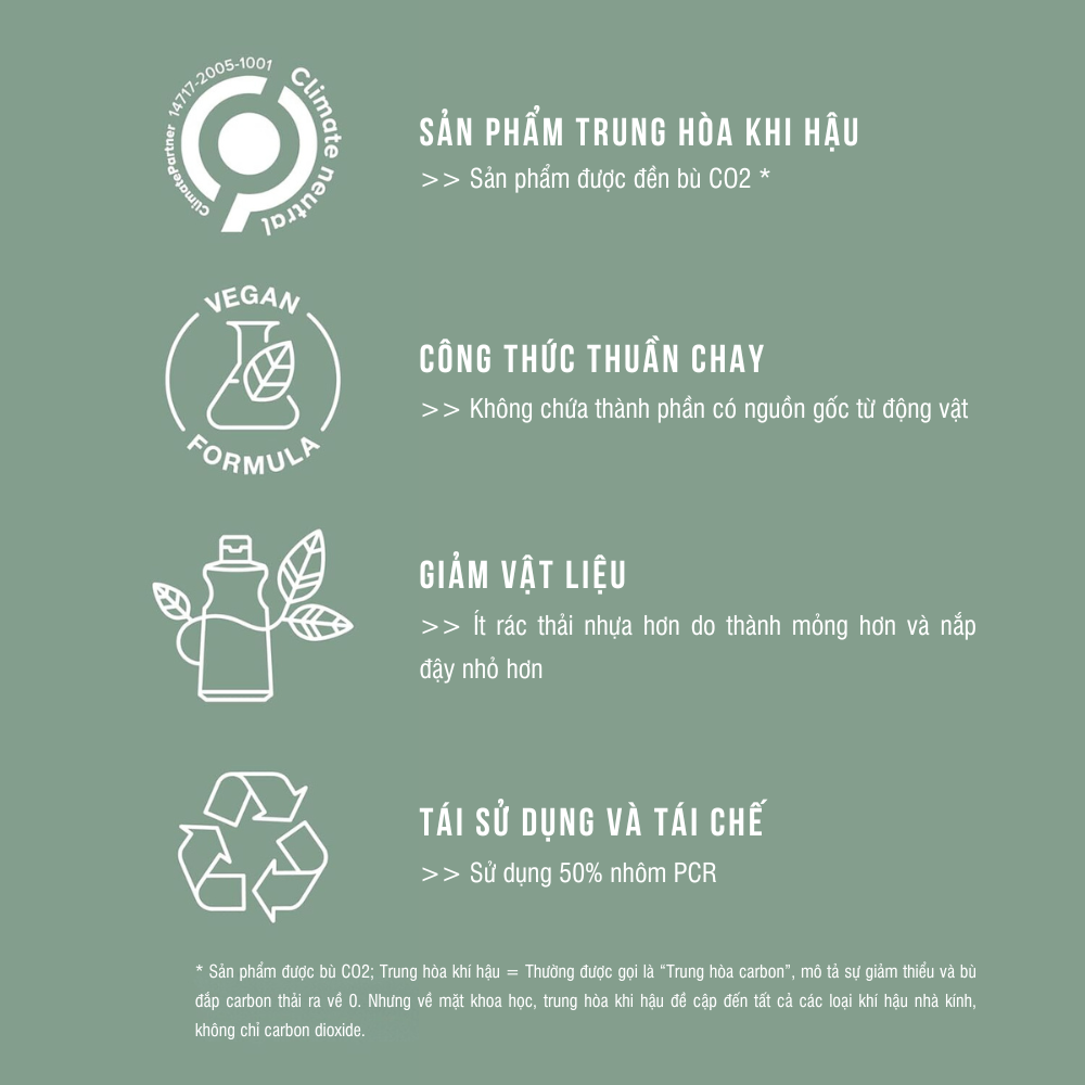 - Ít rác thải nhựa hơn do thân lọ mỏng hơn và nắp nhỏ hơn THÀNH PHẦN NỔI BẬT