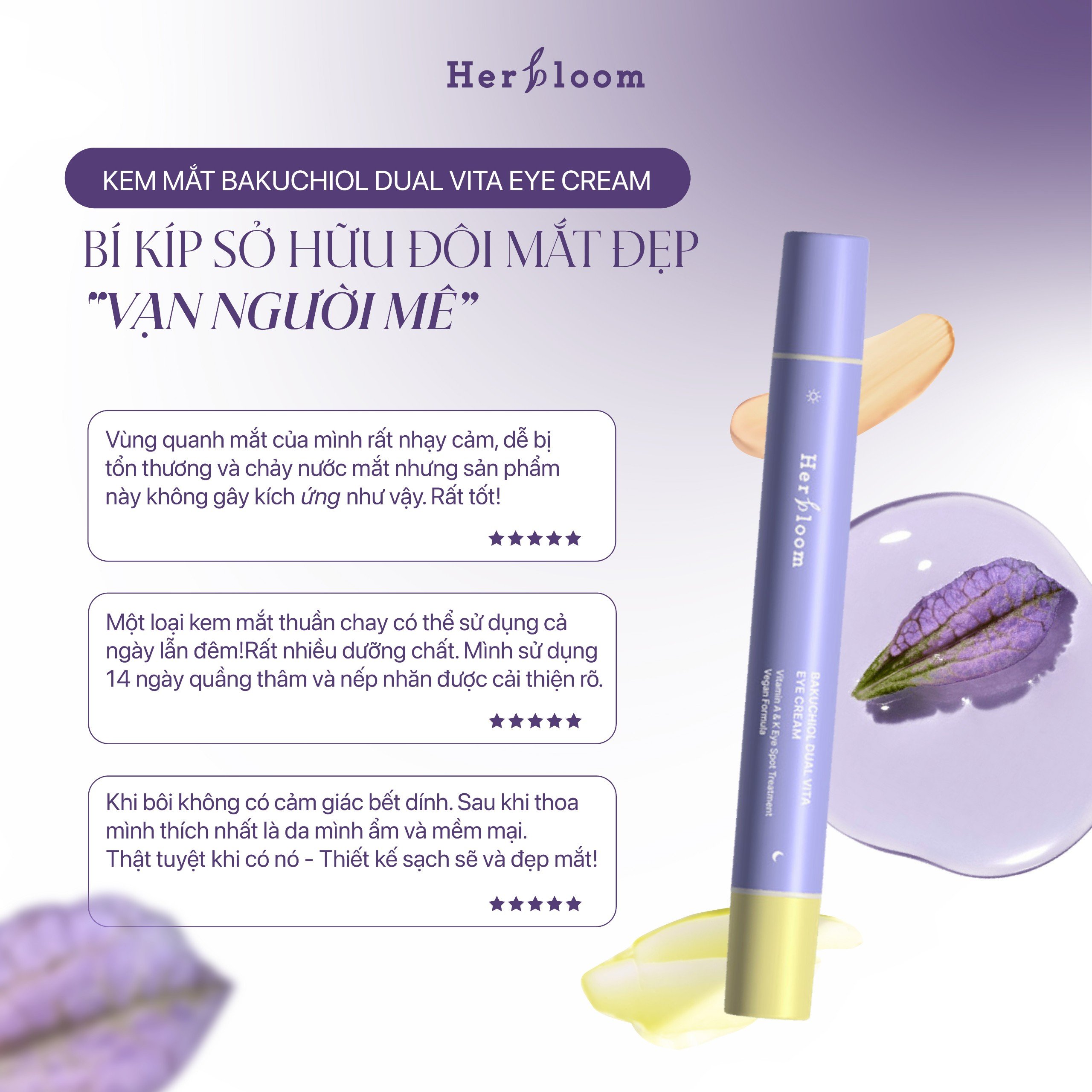 ✨Kem Mắt Herbloom Chống Quầng Thâm Bakuchiol Dual Vita Eye Cream 2in1 (ngày & đêm) 16ML
