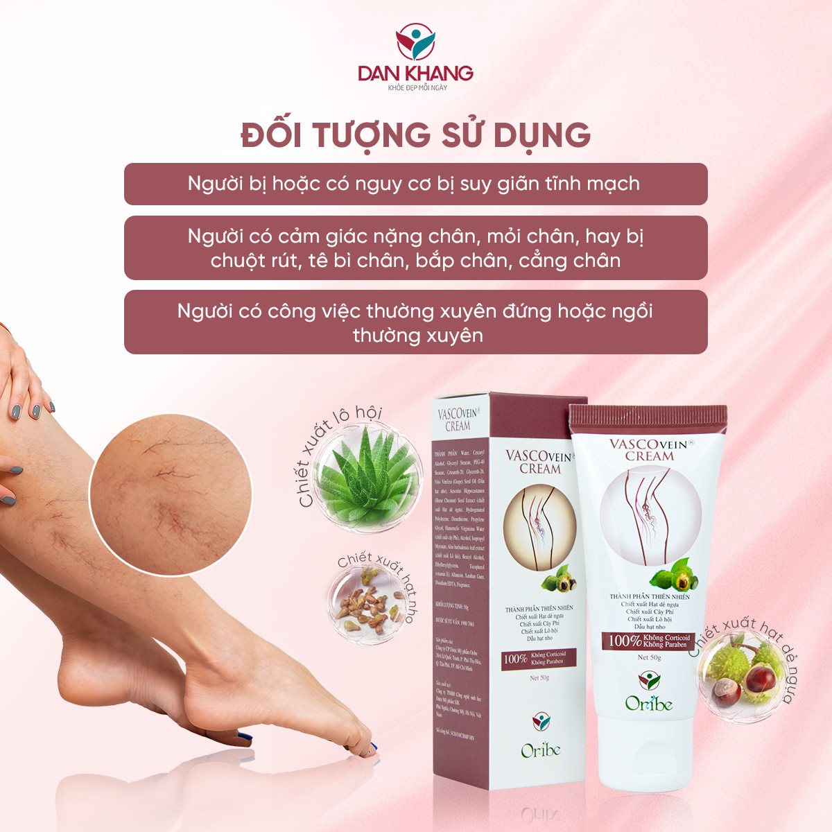 ✨Kem Thoa Giảm Sưng Đau, Tê Phù, Chuột Rút Do Suy Giãn Tĩnh Mạch Vascovein Dân Khang - Tuýp 50g
