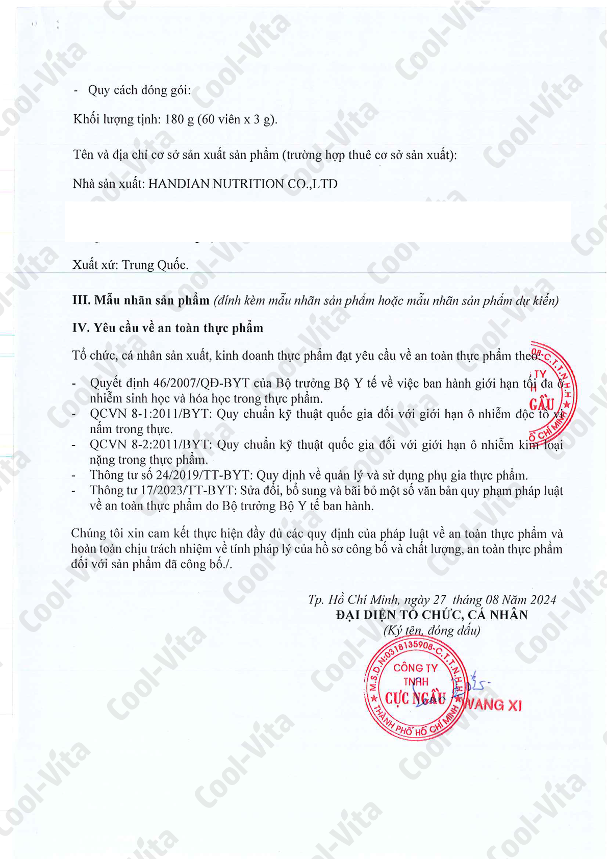 Khối lượng tịnh: 180g (60 viên x 3g)