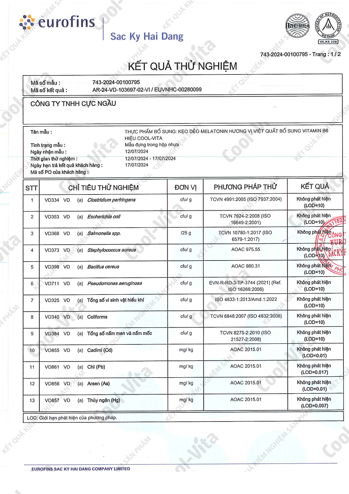 Đường trắng tinh luyện, Siro mạch nha (48%), chất làm dày (Pectin), chất điều chỉnh độ acid: Acid citric, hương liệu quả việt quất tự nhiên, dầu thực vật (chứa chất chống đông vón: Sáp carnauba), Vitamin B6 (dạng Pyridoxin hydrochloric 0,13%), Melatonin (0,12%), Maltodextrin, chất tạo màu tự nhiên. Nước ép trái cây và rau quả.