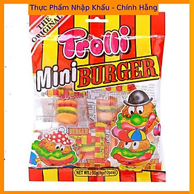 Kẹo dẻo Trolli Mini Burger 600gr Để nói về những thương hiệu tên tuổi trong phân khúc kẹo dẻo, thì Trolli chắc chắn sẽ là cái tên được các tín đồ ăn uống trên thế