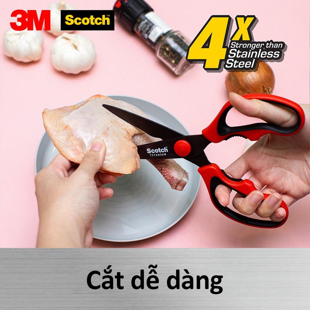 ✨Kéo nhà bếp Scotch 3M tay cầm màu đỏ cao cấp có thể tháo rời, lưỡi kéo sắc bén, chống gỉ sét, kháng khuẩn KS-DTR, Red