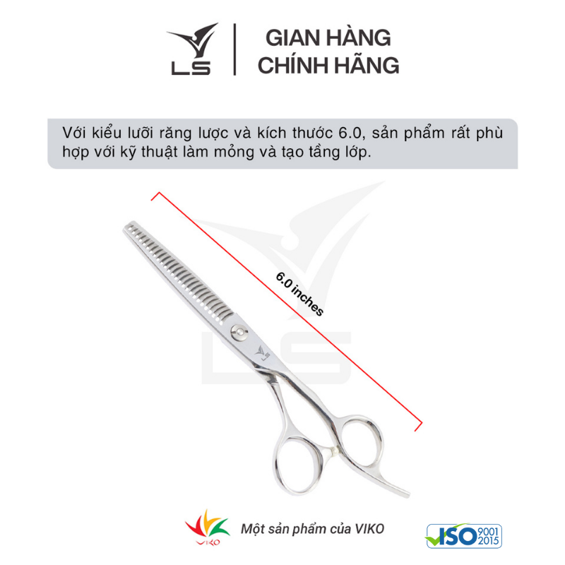 Với kiểu lưỡi thẳng và kích thước 6.0, sản phẩm rất phù hợp với các đường cắt thẳng (blunt cut). Dòng kéo cắt tóc cao cấp VLS luôn đảm bảo chất lượng (cắt không chạy