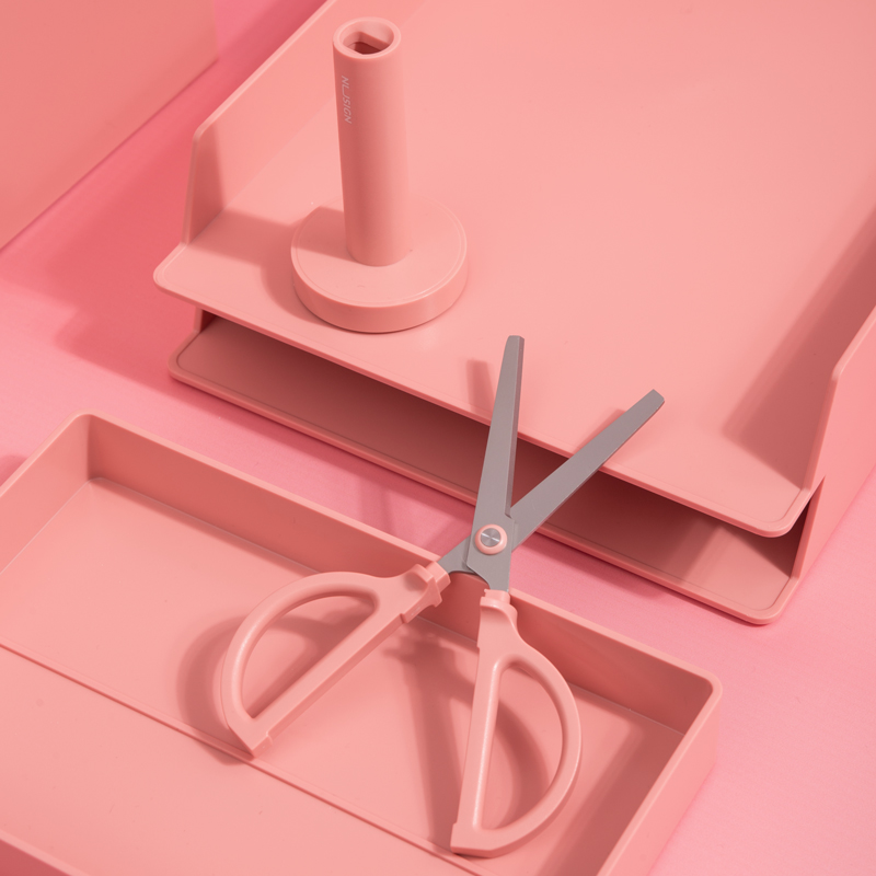 ✨Kéo văn phòng cao cấp có đế đựng Deli - Chống dính khi cắt băng dính - Thiết kế màu pastel đơn giản, hiện đại - NS051