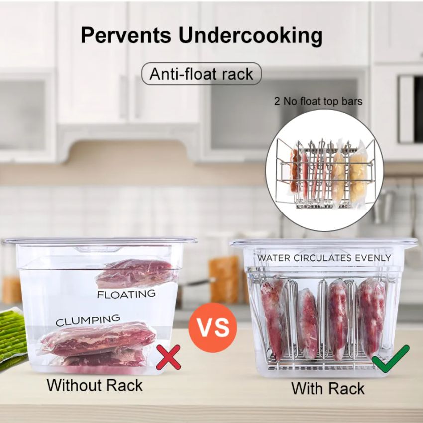 - THÂN THIỆN VỚI NGƯỜI DÙNG: Tay cầm mở rộng giúp bạn dễ dàng nhấc và tháo giá sous vide mà không cần chạm vào nước nóng và giá cũng có thể thu gọn hoàn toàn để cất giữ thuận tiện.