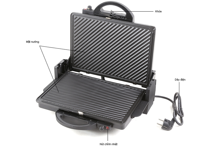 - Công suất: 1.800 - 2.100W - Trọng lượng sản phẩm: 4.51kg - Thiết kế chắc chắn, có tay cầm chống bỏng - Nướng nhanh hơn với thiết kế 2 mặt nướng nóng đều -