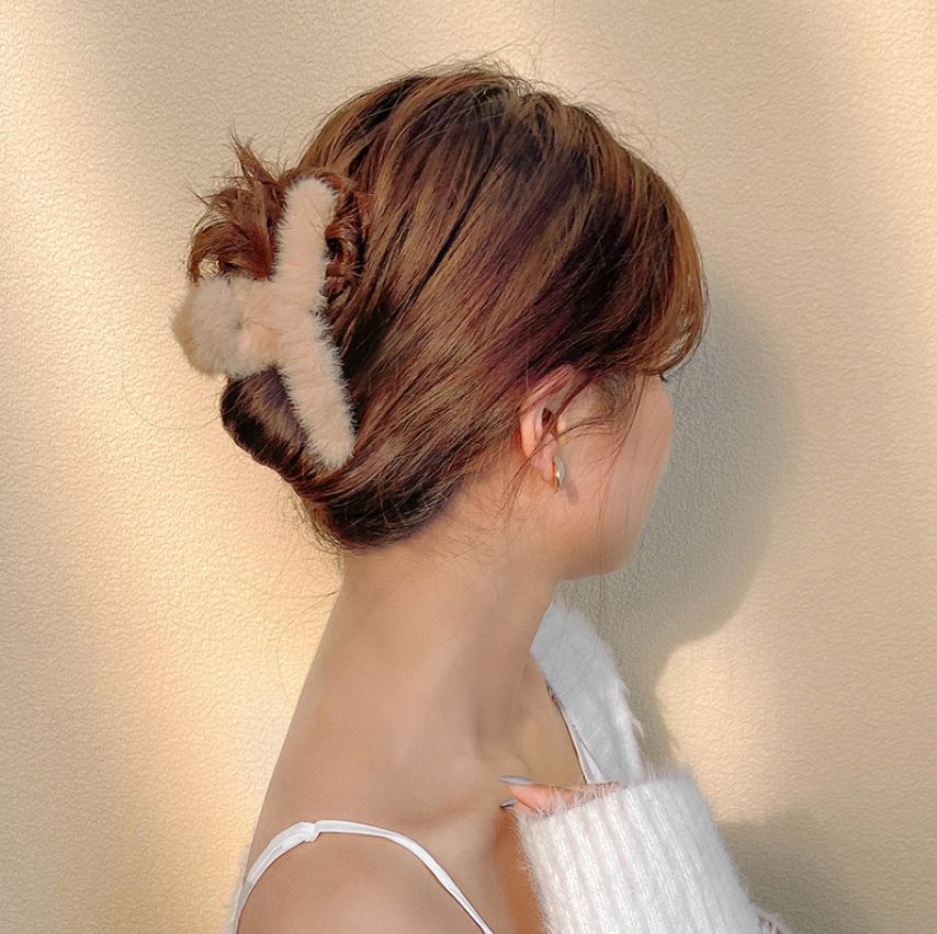 Kẹp Tóc Phủ Lông Cỡ Lớn Phong Cách Hàn Quốc, Kẹp Tóc Thu Đông Dễ Thương - BEYOU