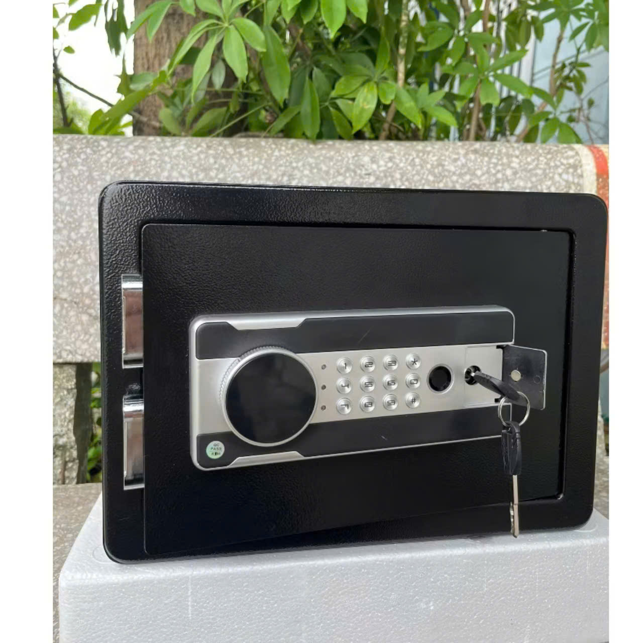 THÔNG SỐ KỸ THUẬT:- Két sắt vân tay, két sắt mật khẩu , khóa cơ- Phụ kiện kèm theo: 2 Đinh vít tường, 4 Pin AA, 2 Chìa khóa cơ dự phòng- Kích thước thực tế:+ Cao 25cm x Rộng 25cm x dài 35cm- ...