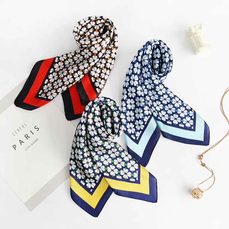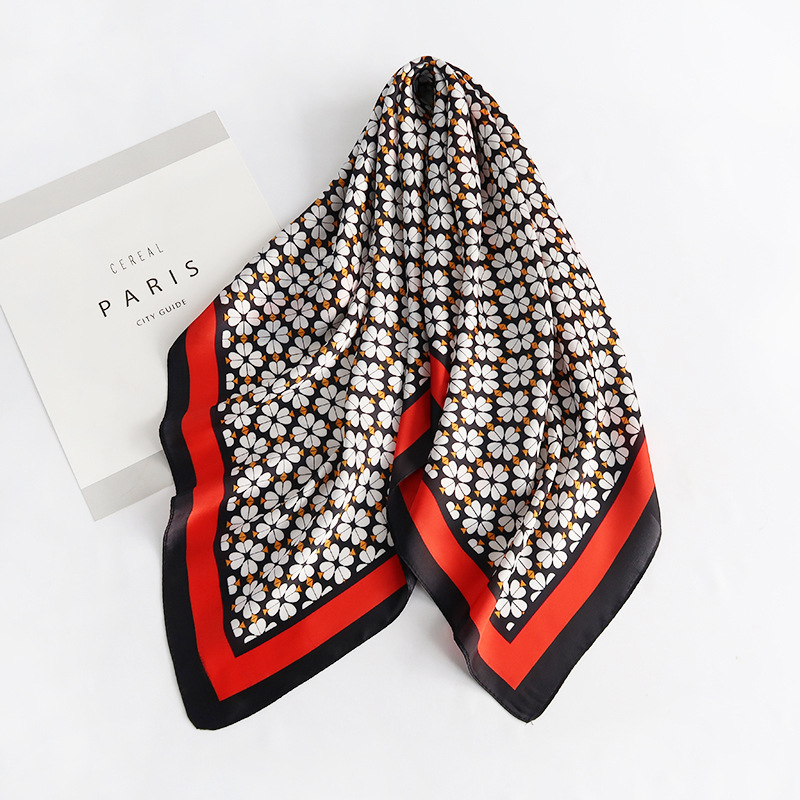 ✨Khăn lụa turban vuông vintage hoa 4 cánh may mắn phong cách Nhật (70x70cm) AKL95