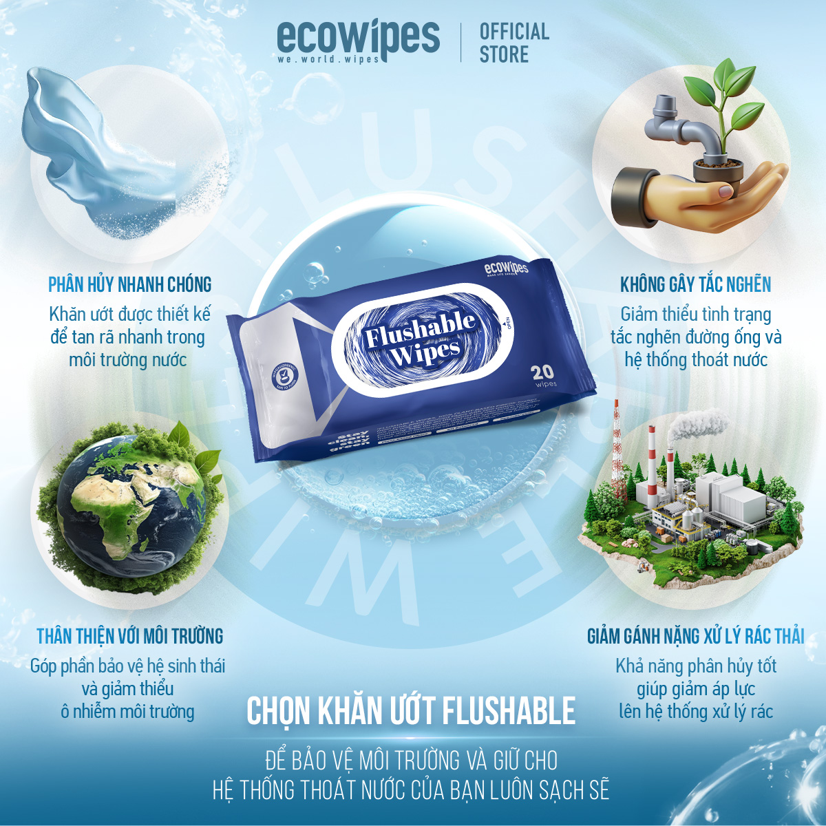 Bạn đang tìm kiếm một giải pháp vệ sinh tiện lợi cho túi xách, balo hay những chuyến đi ngắn ngày? Khăn ướt phân hủy trong nước Flushable Wipes 20 tờ chính là lựa chọn