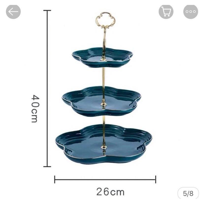 ✨KHAY ĐỰNG BÁNH KẸO HOA QUẢ SỨ XANH CỔ VỊT 3 TẦNG HÌNH HOA 5 CÁNH