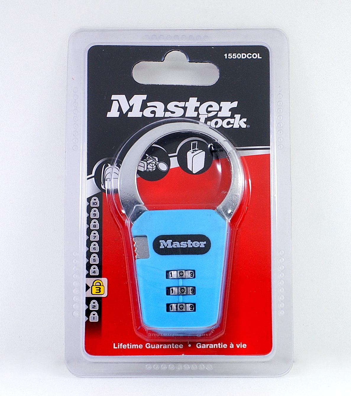 Ổ KHÓA SỐ MASTER LOCK 1550 DCOL Mã sản phẩm: Master Lock 1550DCOL (hoặc 1550EURDCOL) Thông tin sản phẩm: Màu sắc sáng, đẹp gồm: xanh dương, xanh lá cây, hồng và đen. Thiết kế lạ