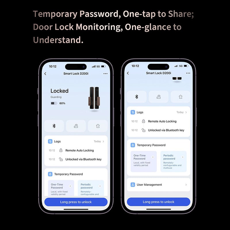 - Chìa khóa cơ Tính năng chống trộm, cảnh báo phá khóa, hết pin Khoá thông minh nhận diện khuôn mặt Aqara D200i có tính năng chống trộm đáng kể. Với tính năng này, khi khóa cửa phát hiện việc cạy khóa bất thường, nó sẽ tự động kích hoạt cảnh báo bằng âm thanh và đèn LED và gửi thông báo đến điện thoại của bạn. Điều này giúp bạn có thể phản ứng kịp thời và ngăn chặn bất kỳ hoạt động trộm cắp nào. Bên cạnh đó khóa có tính năng chống nhìn trộm mã PIN bằng cách nhập số ngẫu nhiên cùng với mã PIN thực tế để tăng cường bảo mật, không để lại dấu vết mã trên bàn phím. Ngoài ra, Khoá thông minh nhận diện khuôn mặt Aqara D200i cũng tích hợp chức năng cảnh báo khi pin yếu, giúp bạn luôn biết được trạng thái của khoá thông minh và có thể thay thế pin kịp thời để đảm bảo an toàn và tiện lợi khi sử dụng. Việc sạc pin cho Aqara D200i rất đơn giản qua cổng USB-C . Mở khóa bằng Home Keys Aqara D200i Smart Lock được tích hợp hoàn toàn với tính năng bảo mật tiên tiến của Home Keys. Kết hợp khóa home vào AppWallet của bạn, Watch của bạn thành chìa khóa thông minh. Chạm thiết bị của bạn vào Aqara D200i để kích hoạt và mở khóa nhanh chóng. Khóa Home yêu cầu (XR hoặc XS trở lên – xem danh sách tương thích ). Hỗ trợ Watch Series 4 trở lên. Tính năng có thể yêu cầu Homehub như TV hoặc Homepod Mini, Homepod… Nhận dạng cực nhanh và chính xác Khóa cửa thông minh Aqara D200i Face ID được thiết kế để phù hợp với nhiều người dùng. Mỗi người dùng có mã PIN riêng biệt, thiết bị NFC và khuôn mặt. Nó có khả năng lưu trữ 50 khuôn mặt, 50 mã PIN và 25 thiết bị NFC. Quản lý người dùng bằng ứng dụng Aqara Home một cách trực quan. Việc thêm hoặc xóa thành viên, mã PIN riêng lẻ, khuôn mặt và thẻ NFC đơn giản và dễ dàng. Cảm biến chuyển động sẽ kích hoạt mô-đun nhận dạng khuôn mặt, đảm bảo phản hồi mở khóa siêu nhanh và tối đa hóa tuổi thọ pin. Tốc độ mở khóa được nghiên cứu: