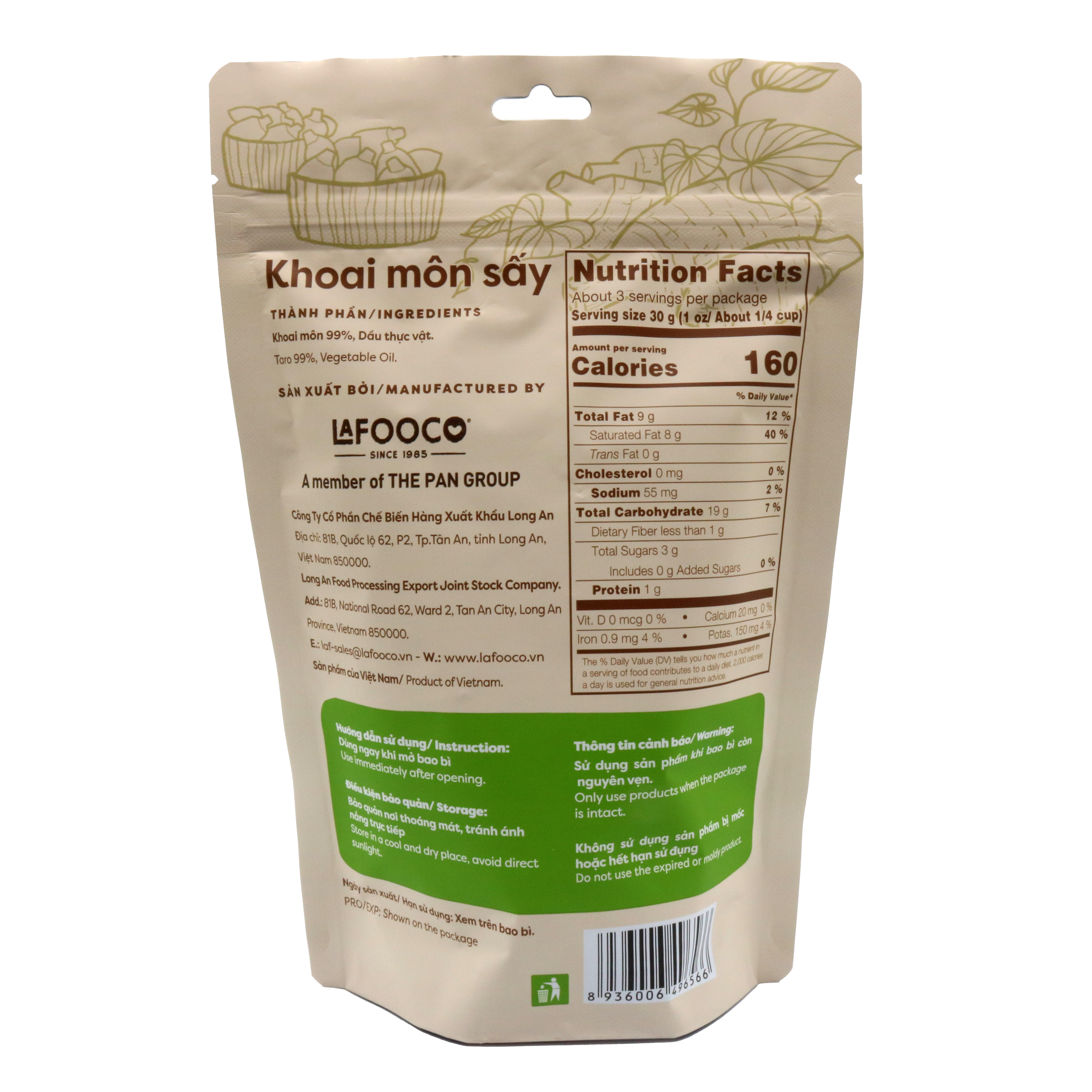 - Thành phần: 99% Khoai môn, Dầu thực vật