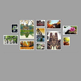 Bộ khung ảnh bao gồm: 2 khung 21 x 30 cm, 5 khung 13 x 25 cm, 4 khung 10 x 15 cm.