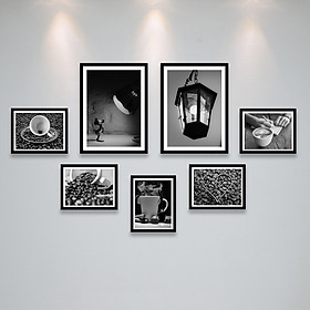 ✨Khung Ảnh Treo Tường Trang Trí Quán Cafe (Cà Phê) Phong Cách Trắng Đen, Vintage Tặng Kèm bộ ảnh như hình mẫu, đinh treo tranh và sơ đồ treo - PGC289