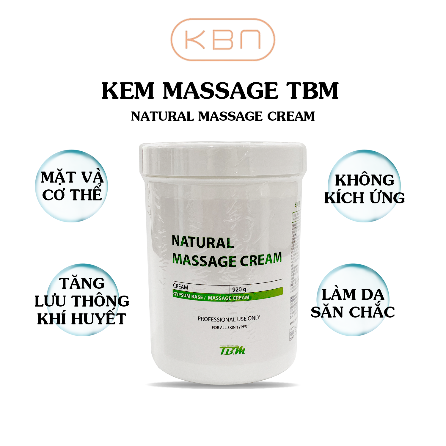Kem Massage thiên nhiên NATURAL MASSAGE CREAM TBM là dòng kem massage chuyên dùng cho mặt và cơ thể giúp dưỡng ẩm và mang lại cảm giác mềm mịn khi đang massage. - Với liệu