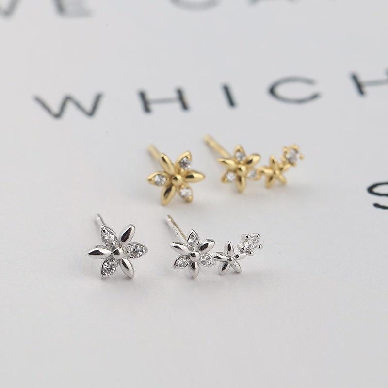 Khuyên tai bạc 925 nụ cọc cạch 1 bên 3 hoa 1 bên 1 hoa xinh xắn độc lạ Dế Bạc - K5840