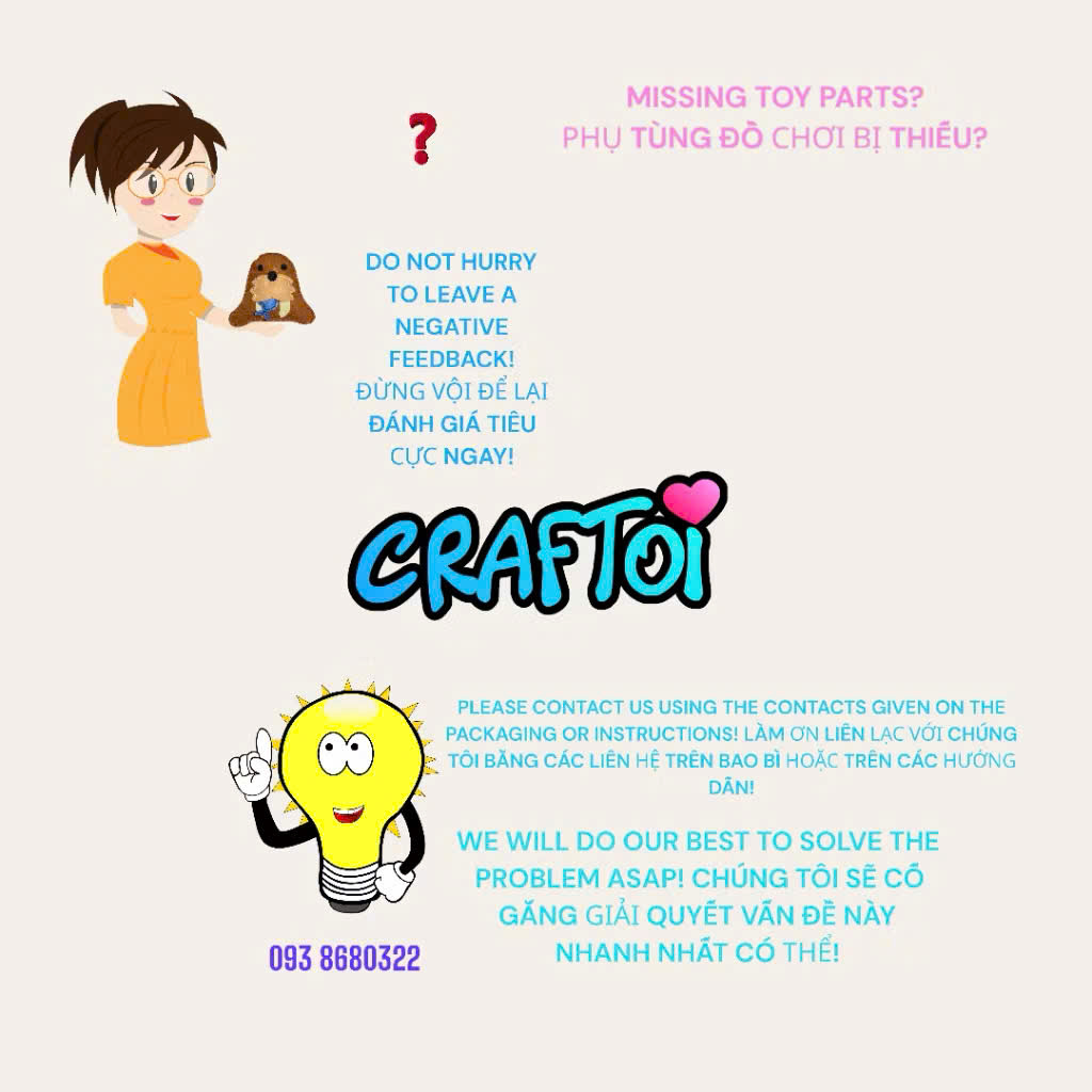 Mua tại Tiktok*** Thông tin sản phẩm Mã hàng: BEAR MISHA Tuổi sử dụng: 5+ Kích thước: 18x16 cm Một bộ bao gồm: 13 bộ phận làm bằng vải nỉ Bông nhồi Chỉ may và bông nhồi Kim an toàn làm bằng nhựa Bảo quản: trong phòng khô thoáng. Thành phần: polyester, nhựa. Năm sản xuất: 2023 Độ bền của sản phẩm: sử dụng không giới hạn!!! Xuất xứ VIỆT NAM !!!!!!! Được Trung Tâm Giám Định Và Chứng Nhận Hợp Chuẩn Hợp Quy VietCert đánh giá chứng nhận phù hợp Quy chuẩn QCVN 3:2019/BKHCN của Bộ Khoa Học - Công nghệ. Đồ chơi sáng tạo từ nhồi bông. Hãy bắt đầu may con búp bê đầu tiên của bạn!!! Cực kì dễ dàng may với lỗ đục săn và kim làm bằng nhựa rất an toàn. Bé tự may thú bông cho mình Các bạn nhỏ tự tay may vá Vì mất nhiều thời gian tự may, bé sẽ yêu quý con thú bông của mình hơn. Rèn luyện tính kiên nhẫn kỹ năng tư duy logic cho trẻ em Sử dụng vải sang trọng an toàn Mềm mại hơn, thích hợp cho bé chơi Được làm từ bông PP mềm Tự làm thú nhồi bông sẽ giúp trẻ nâng cao kỹ năng tập trung, khéo léo của đôi bàn tay. Đồng thời giúp trẻ trân trọng và nâng niu hơn những gì do chính tay mình làm ra. Bộ sản phẩm handmade Sewing giúp trẻ em tự làm thú nhồi bông một cách dễ dàng. Rất đơn giản, trẻ có thể dễ dàng dùng KIM NHỰA khâu các miếng nỉ được đã đục lỗ sẵn cùng với chỉ thêu đính kèm, và sau đó nhồi thêm bông để tạo ra một con vật vô cùng đáng yêu. Mẹ hãy giúp em thực hiện món đồ này để có những kỉ niệm thật vui với nhau nha! Tất cả đã gói gọn trong bộ sản phẩm tự làm thú nhồi bông của Craftoi, vô cùng an toàn và lại rất dễ. BEAR MISHA Creativity set. Stuffed toy. Sewing my first doll !!! Easy to sew with a prepunched holes and safety plastic needle. 5+ DIMENSIONS: 18x16 cm THE SET INCLUDES: 13 FELT PARTS STUFFING THREADS SAFETY PLASTIC NEEDLE Storage: in dry ventilated rooms. Materials: polyester, plastic. Service life is not limited !!! MADE IN VIETNAM Has been assessed to conform to the Standard OCIN 3:2019 BKHCN of the Ministry of Science and Technology by VIETCERT CERTIFICATION AND INSPECTION CENTRE