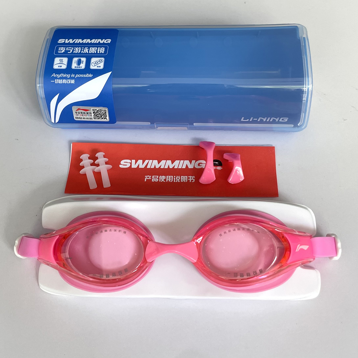 Mua tại TiktokThông tin sản phẩm Kính bơi người lớn LI-NING chống tia UV chống sương mù kèm nút bịt tai - Hồng - Hàng chính hãng