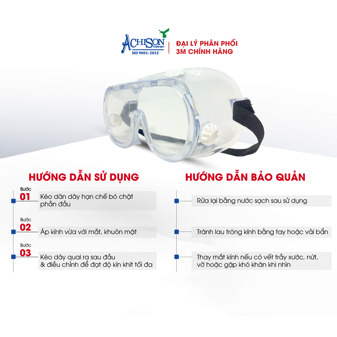 Mua tại TiktokKính Bảo Hộ Chống Hóa Chất 3M 334/ 334AF - Thiết Kế Đeo Ngoài Kính Cận, Chống Bụi & Văng Bắn