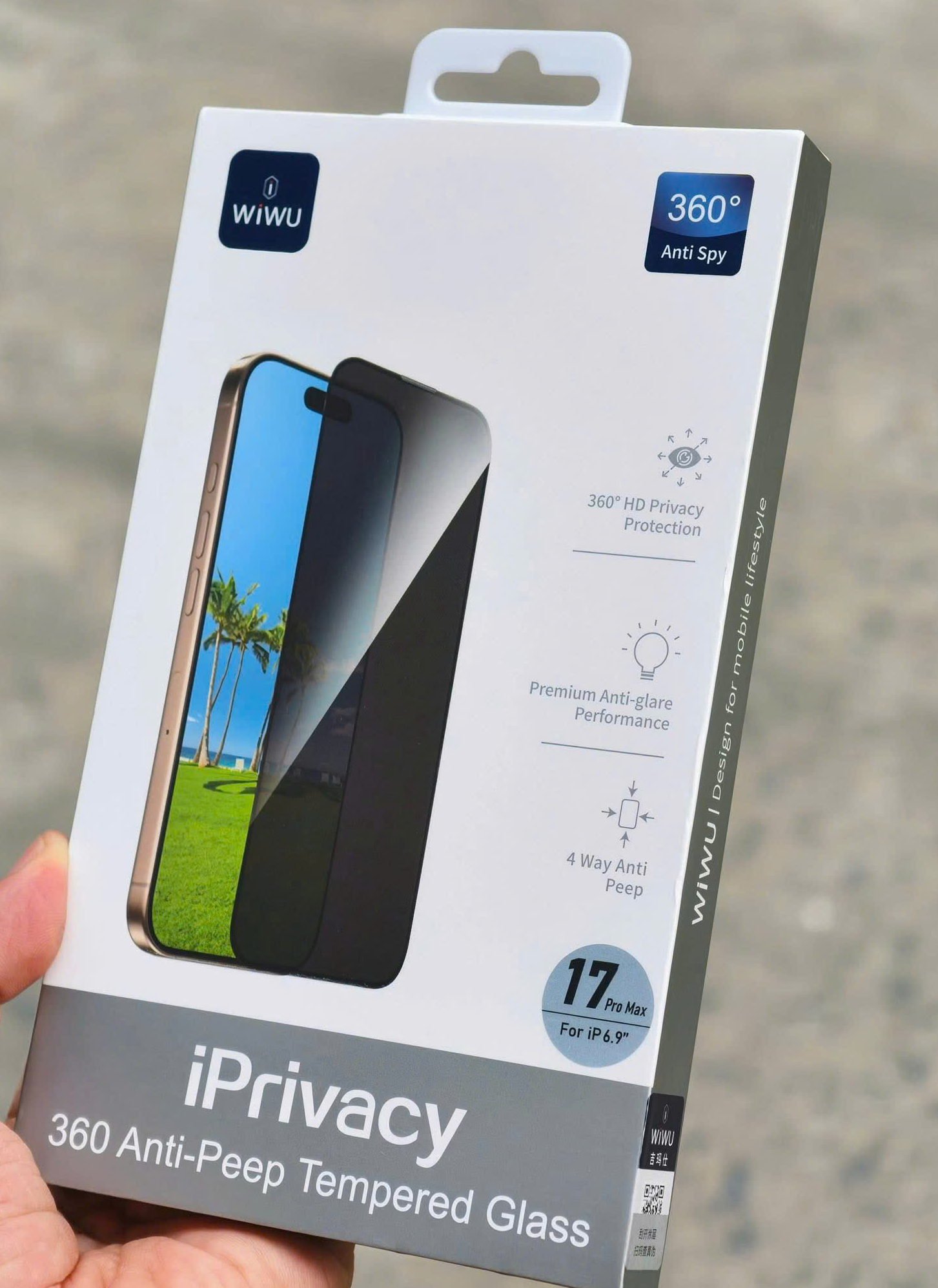 Kính cường lực chống nhìn trộm 4 chiều cho iPhone 17 Pro Max / 17 Pro / 17 Air / 17 hiệu WI WU Privace 360 Kính chống nhìn trộm 360 độ là sản phẩm