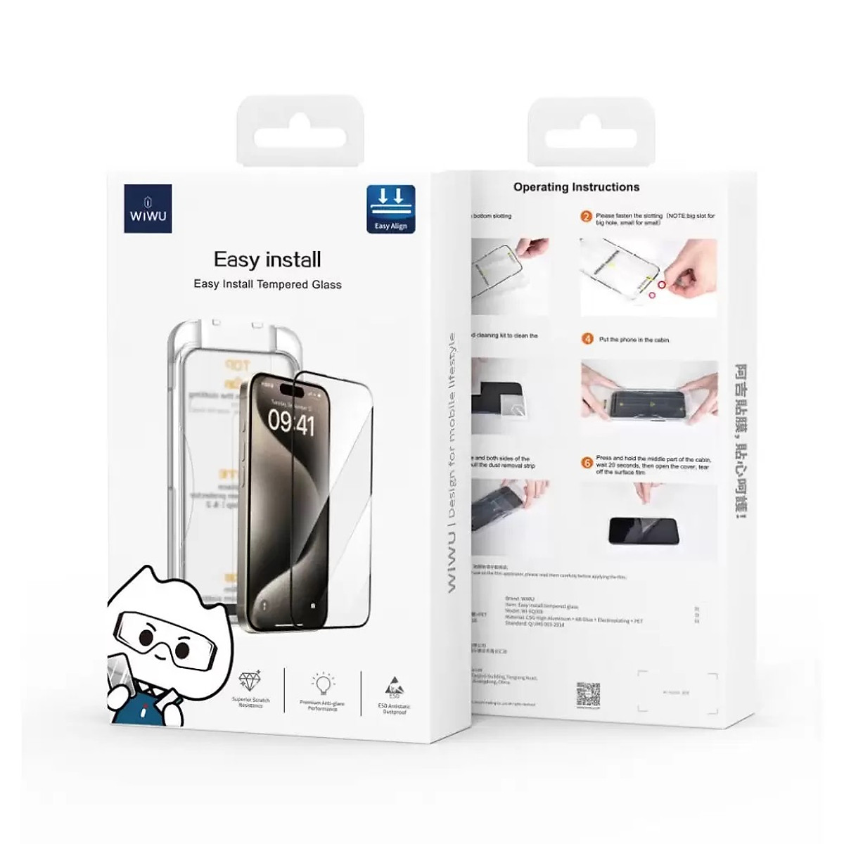 Kính cường lực WiWU SQ-008 đi kèm với dụng cụ hỗ trợ thông minh, giúp bạn lắp đặt nhanh chóng và chính xác. Chỉ cần tháo lớp bảo vệ, đặt kính vào dụng cụ và áp lên màn hình, quá trình hoàn tất mà không có bọt khí, đảm bảo sự khớp hoàn hảo với màn hình.