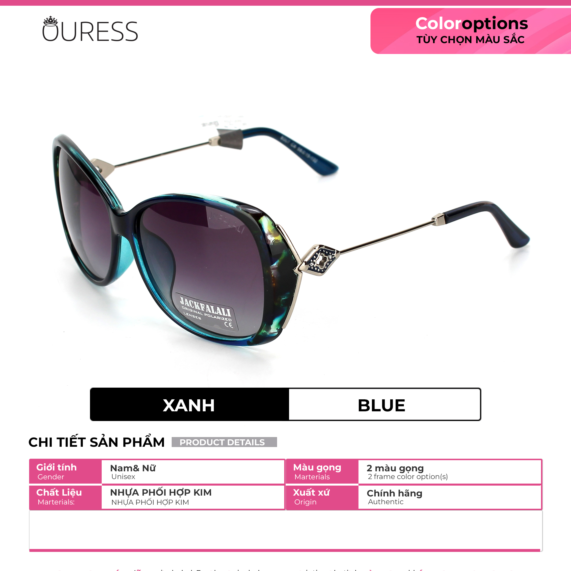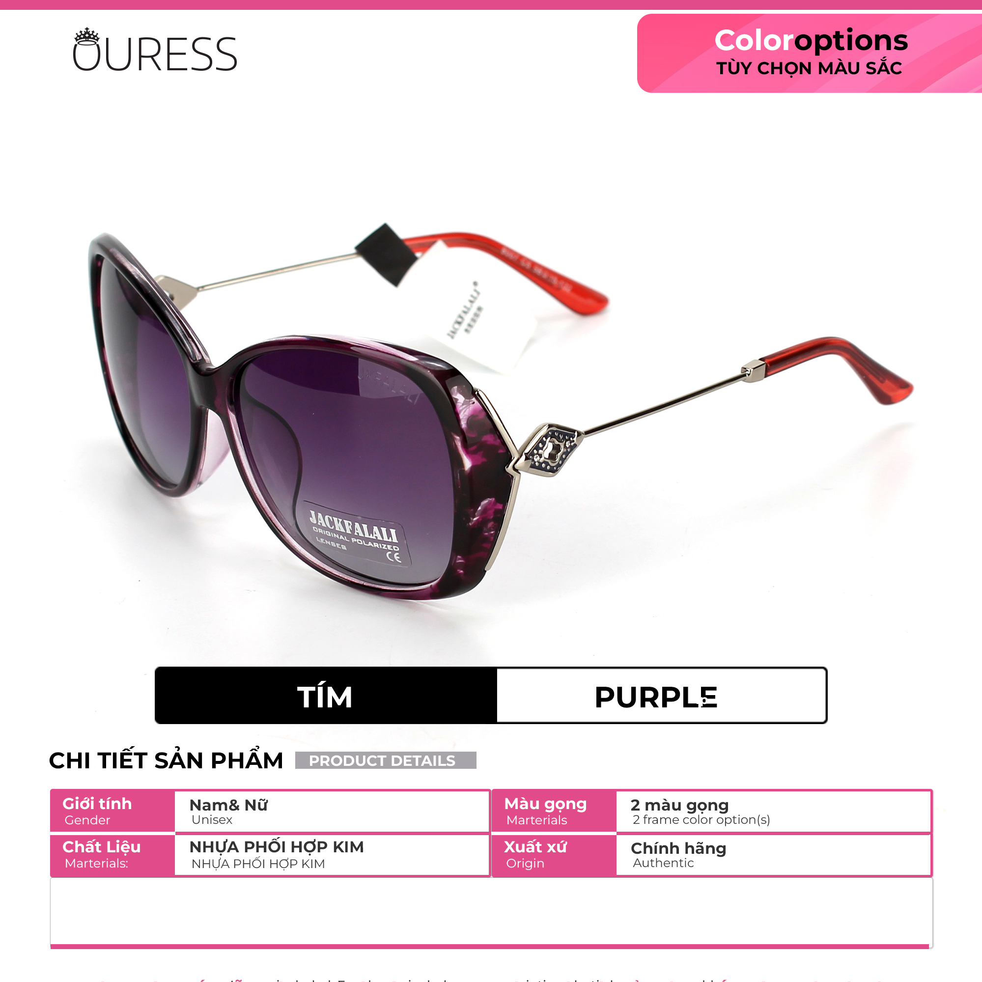 Chống tia UV 100% – Bảo vệ mắt tuyệt đối Thiết kế sang – xịn – mịn, mix mọi style đều hợp Gọng kính chắc chắn, đeo cực êm – không hề đau tai Lựa