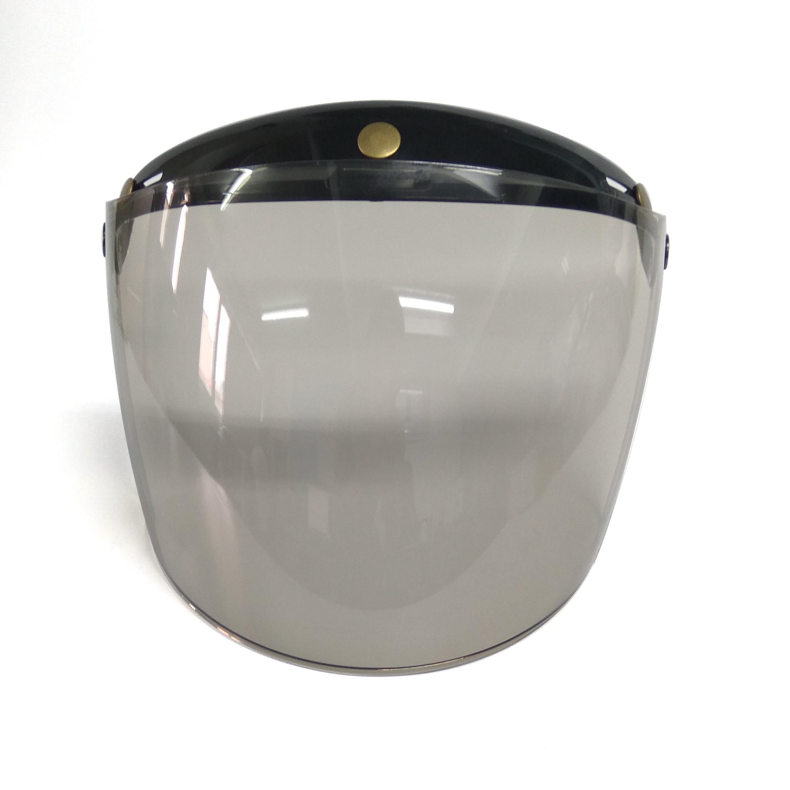 - Kính tráng gương: thích hợp khi đi dưới trời nắng gắt, chống tia uv. Lúc này chiếc kính có tác dụng như 1 chiếc khiên, sẽ phản xạ mọi ánh nắng mặt trời và tia tử ngoại chiếu vào mặt, giúp bạn an toàn tuyệt đối khi đi lâu dưới trời nắng, bảo vệ mắt và da mặt không bị ảnh hưởng bởi tia cực tím. Tuy nhiên khi đi trời tối sẽ gây khó nhìn, vì kính làm giảm độ sáng giống 1 chiếc kính mát. Tùy theo điều kiện công việc và nhu cầu sử dụng của mình, bạn hãy chọn cho mình 1 chiếc kính phù hợp nhất nhé! Các loại màu kính: Ảnh minh họa khi gắn kính vô mũ nửa đầu: Tất cả các loại mũ có 3 khuy trên đầu kiểu như thế này sẽ gắn vừa bạn nhé!!!