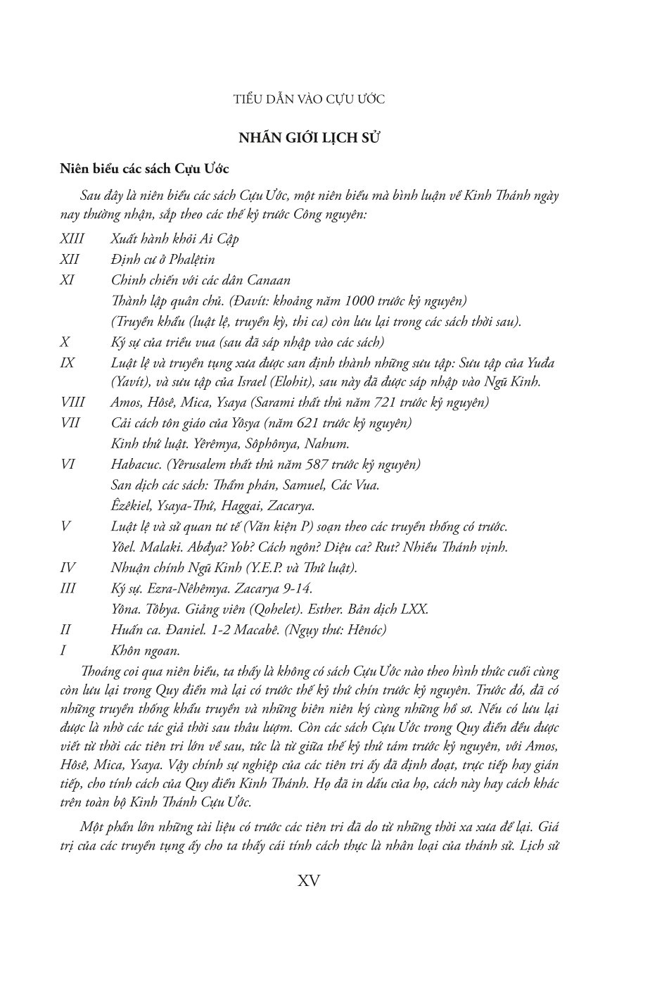 Cựu Ước là Giao ước cũ của người Hebrew (nay gọi là Do Thái) với Thiên Chúa, gồm 46 cuốn chia 4 phần, chứa đựng vũ trụ quan, nhân sinh quan cổ xưa nhất của nhân loại, do nhiều người viết suốt từ năm 1.200 đến năm 100 trước CN. Còn Tân Ước là Giao ước mới của các tín đồ Ki-tô giáo với Thiên Chúa, nguyên văn từ các cổ bản Hi Lạp, ra đời một thế kỷ sau khi xuất hiện đạo Ki-tô, trình bày cuộc đời và học thuyết của Chúa Yêsu.