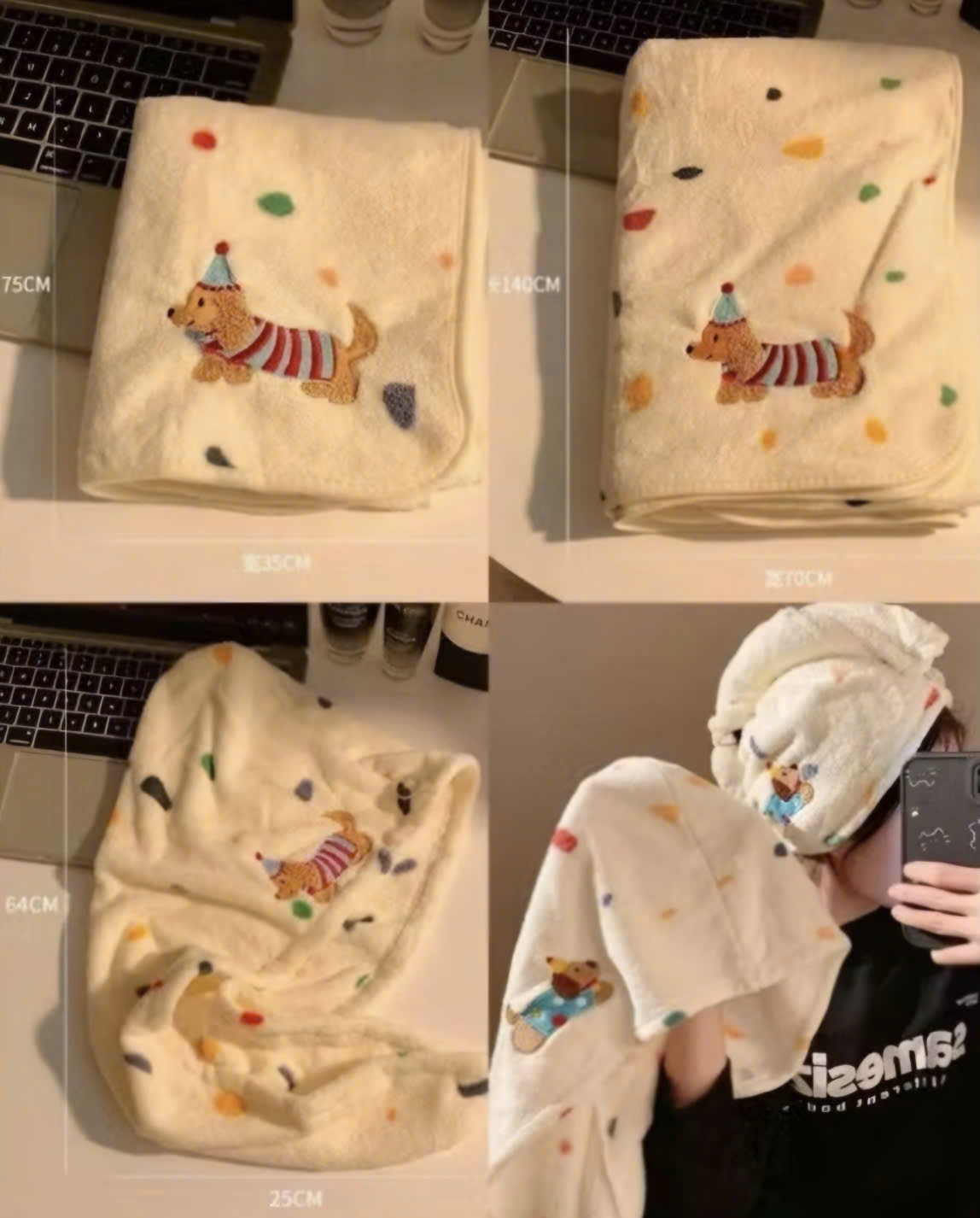 SET 3 KHĂN TẮM CÚN CHẤM BI SIÊU CUTE – SIÊU MỀM - SIÊU THẤM HÚT