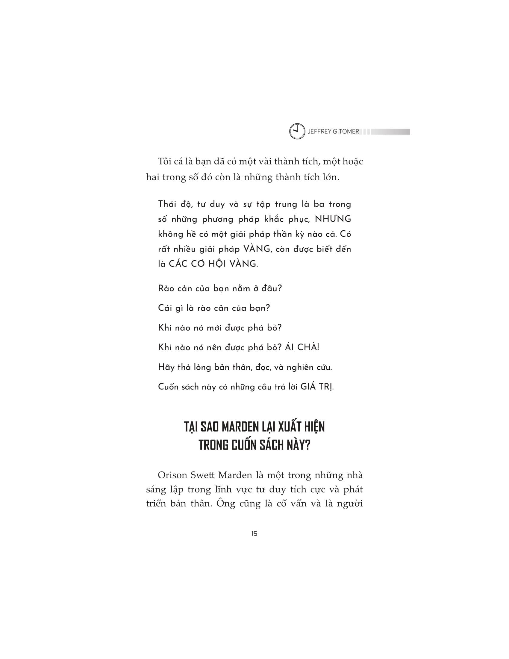 • Chấm dứt những suy nghĩ tiêu cực, lo âu và cảm giác kiệt sức Hãy ngừng trì hoãn và bắt tay vào hành động. Ngay bây giờ! Về tác giả: Jeffrey Gitomer là một chuyên gia bán hàng, tác giả sách kiêm diễn giả. Ông viết và giảng dạy về bán hàng, lòng trung thành của khách hàng và sự phát triển cá nhân. Gitomer đã viết 15 cuốn sách, trong đó có những cuốn sách bán chạy nhất theo đánh giá của New York Times - The Sales Bible và The Little Gold Book of YES! Attitude. Cuốn sách thành công nhất của ông, The Little Red Book of Selling, đã bán được hơn năm triệu bản trên toàn thế giới và được dịch sang 14 thứ tiếng. Tất cả các đầu sách của Gitomer đều đạt vị trí số 1 trên .