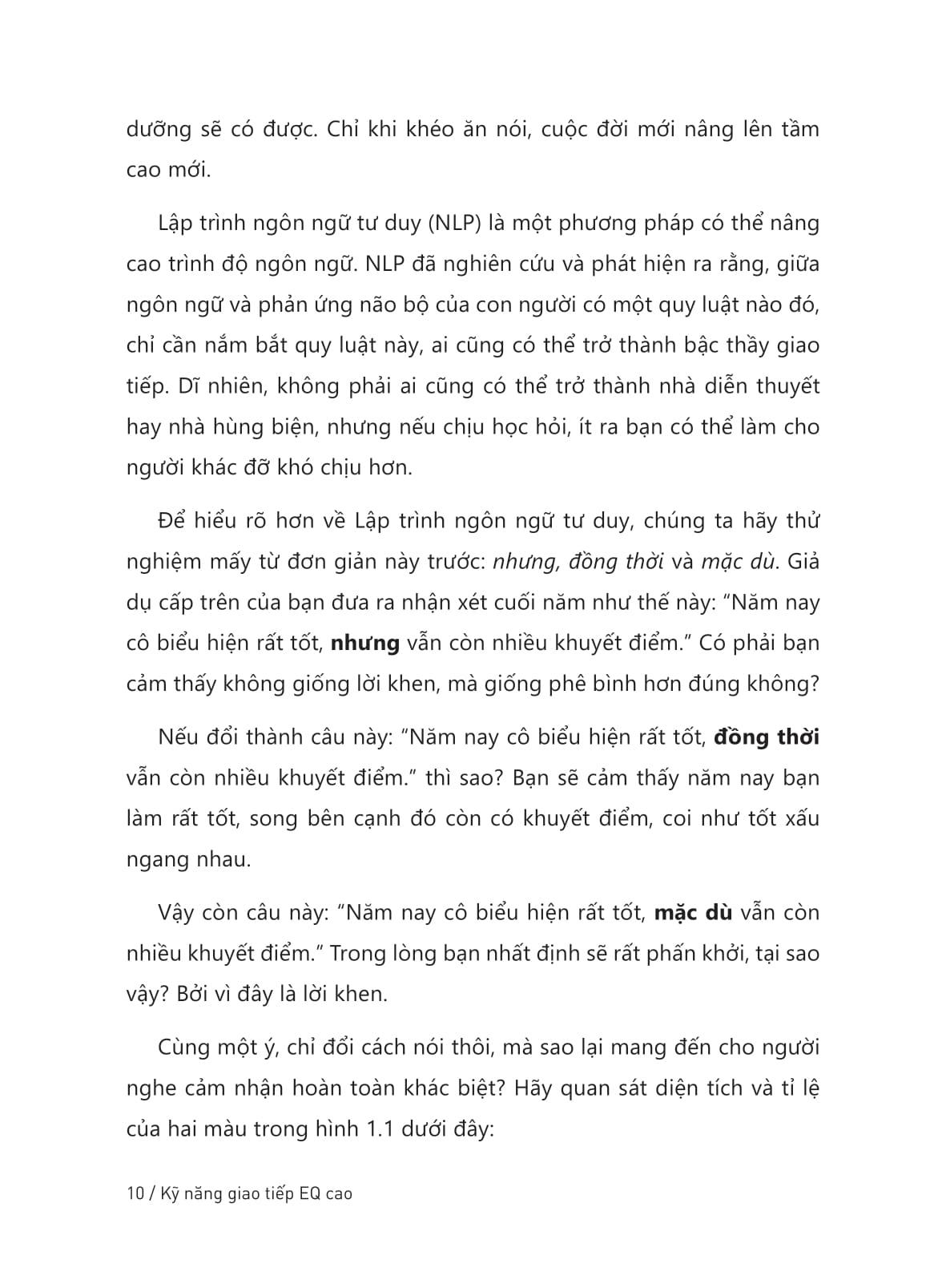 “Thẳng tính” chỉ là một từ để bao biện cho sự vụng về trong cách giao tiếp của người EQ thấp. Vậy thế nào là nói chuyện EQ cao? Hãy ghi nhớ công thức: “ngôn ngữ + tâm lý”, nắm bắt suy nghĩ của người khác, tìm ra điểm tích cực trong lời nói tiêu cực, loại bỏ khuôn khổ giới hạn trong tư tưởng... Nếu bạn có suy nghĩ “Nói chuyện khéo léo là do trời sinh”, bạn đã nhầm. Giao tiếp tốt không phải do tính cách mà là một loại kỹ năng, chỉ cần bạn bồi dưỡng, luyện tập thường xuyên là được.