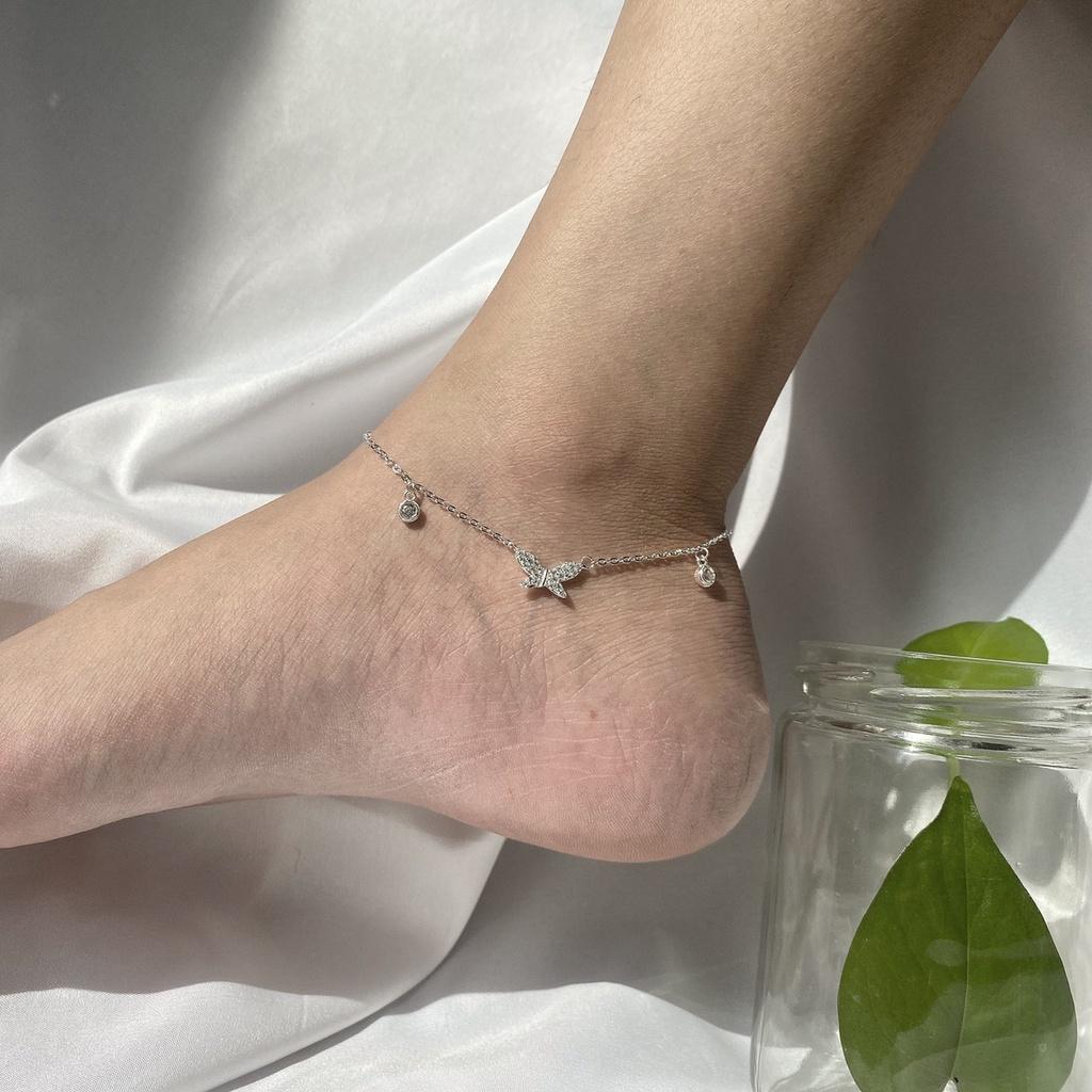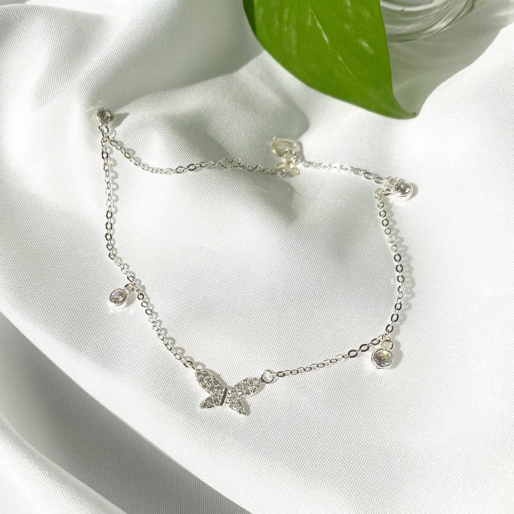 Lắc chân bạc 925 butterfly treo tiny đính pha lê xinh xắn dễ thương Dế Bạc – LC4392
