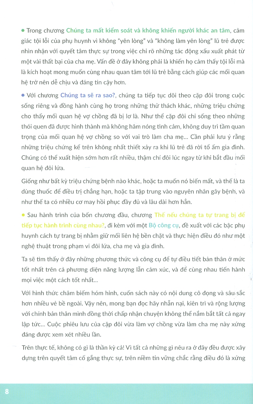 Rồi đến thời điểm các cơn khủng hoảng bắt đầu bùng nổ. Đối chiếu với nhiều cách nhìn nhận khác nhau (tuy nhiên trọng tâm vẫn là Kỷ luật tích cực của Jane Nelsen), hai nữ tác giả cho chúng ta thấy hậu quả của những cơn khủng hoảng ấy. Thông qua các tình huống cụ thể và điển hình trong gia đình, kèm theo hình ảnh minh họa vui nhộn, hai chuyên gia gợi ý cho độc giả những việc mà mỗi cá nhân cần tự mình hoặc cùng với bạn đời thực hiện để vượt qua khủng hoảng, cải thiện mối quan hệ vợ chồng và bầu không khí trong gia đình.