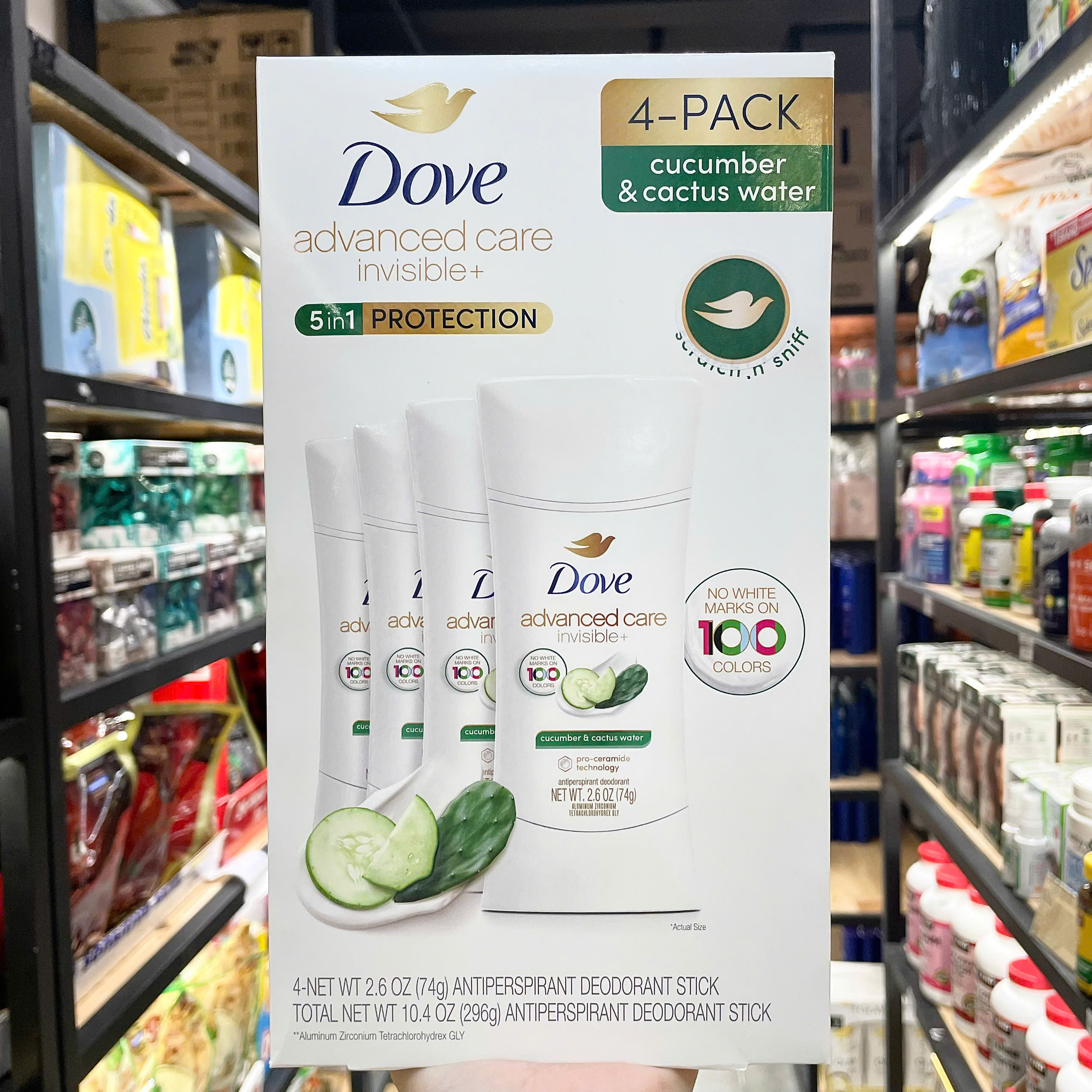 Set 4 Lăn khử mùi Dưa Leo Dove Advanced Care 48h 74g Hàng Nhập Mỹ Xuất xứ: Mỹ Thương Hiệu: Dove Quy cách đóng gói: 74g - Lăn khử mùi Dưa Leo Dove Advanced Care