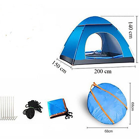 Kích thước: 2m x 1.5m x 1.4m Khung lều làm từ sợi thủy tinh tổng hợp có dẻo dai tạo độ bền sử dụng lâu dài cho sản phẩm Mặt ngoài lều được tráng 1 lớp bạc giúp chống tia tử ngoại rất tốt Thiết kế nhỏ gọn, sức chứa 2-3 người giúp bạn dễ dàng mang theo Đường chỉ may cẩn thận, chắc chắn Lều có sẵn các phụ kiện cố định lều xuống đất khi thời tiết có gió to  Cửa sổ lưới kéo bên trong Tháo lắp dễ dàng, nhanh chóng Khả năng kháng nước và chịu lực tốt . Thích hợp cho 2-3 người sử dụng Cách lắp đặt Lều Cắm Trại Lều Du Lịch Tự Bung Gấp Gọn Chống Nước 4-6 Người ( 2 X 1.5 X 1,35 m) : Trải lều ra trên mặt đất bằng phẳng Nối các thanh rời thành 2 thanh dài sau đó luồn qua đường may sẵn hình chữ X Tại 4 góc lều tra đầu thanh vào lỗ nhựa ở các góc Buộc dây ở đỉnh lều để đỉnh lều cố định Cắm đinh vào 4 góc lều để cố định lều