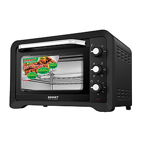 Lò nướng thùng Sanaky dung tích 50 lít với thiết kế hình chữ nhật màu đen sang trọng, hài hòa với mọi không gian căn bếp Dung tích lớn phù hợp cho gia đình đông thành