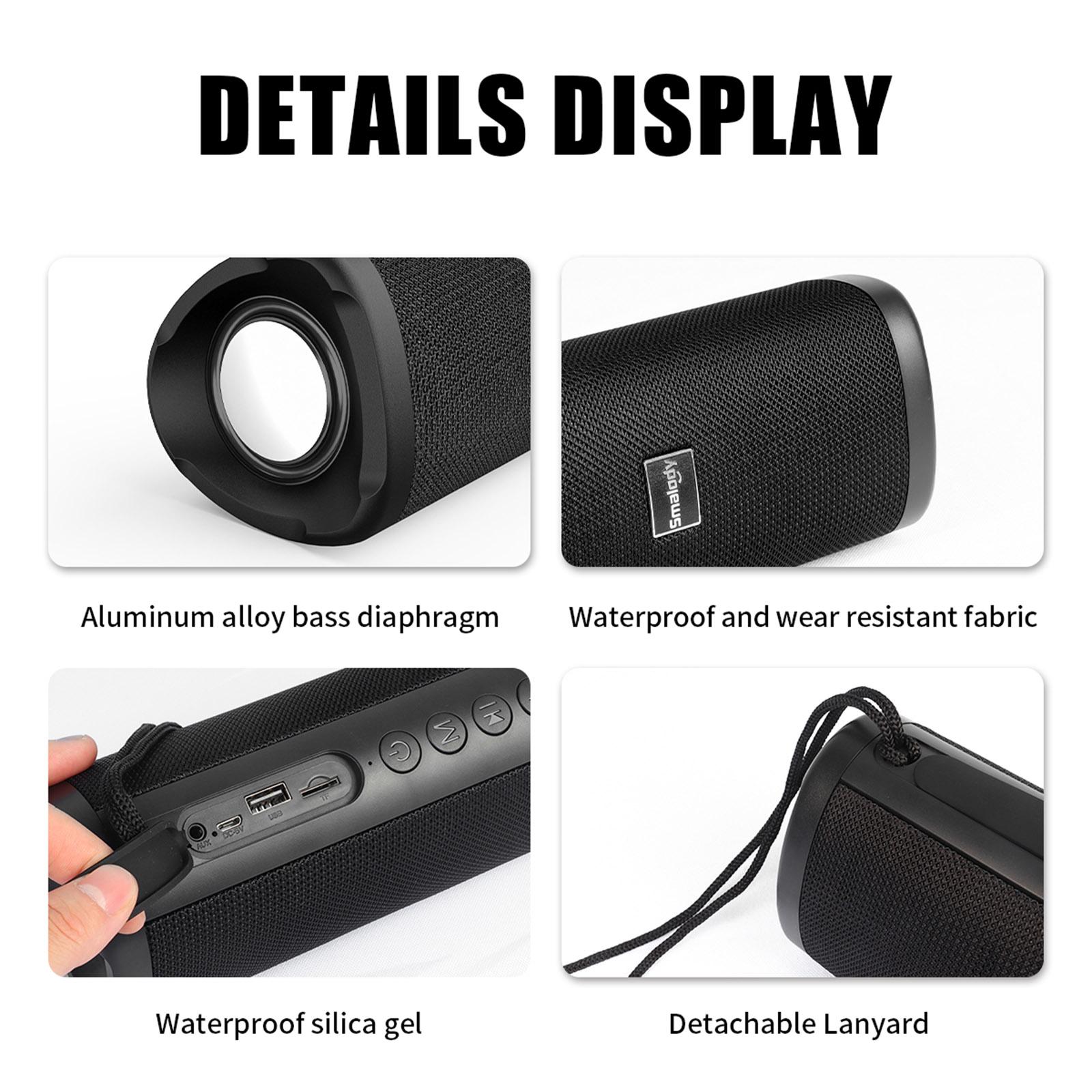 Smalody SL-10 is a high-quality outdoor BT speaker, with cylinder-shaped appearance and powerful sound. It supports FM radio, TF card, U dirve and 3.5mm AUX IN music play; with microphone, you can enjoy hands-free calls.