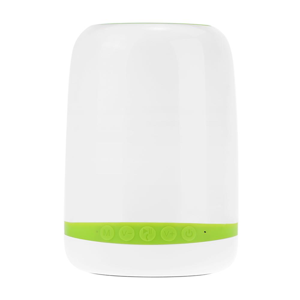 iCutes L350 Bluetooth Lamp Speaker with smart lamp design, colorful lamp light makes your life style colorful and graceful. With high quality unit, it brings you pure and excellent music. You can enjoy music at anytime and anywhere. Gentle touch speaker net for changing different colors when playing music. LED table lamp presents three levels of brightness for reading, sleeping, etc. iCutes L350 Features: [Advanced Bluetooth Chip Strong Compatibility] With Bluetooth 3.0 technology, it's perfectly compatible with almost all Bluetooth-enabled mobile devices such as, for iPhone6s 6s Plus SE, for Samsung Galaxy S7 S6 / Note 5 4, for HTC One, Tablet PC, Laptop, etc. Multi-functional lamp speaker support TF card and line-in function. [Outstanding Sound Quality] With high quality unit, it brings you pure and excellent music. You can enjoy music at anytime and anywhere. Bluetooth speaker with smart lamp design, colorful lamp light makes your life style colorful and graceful. [Hands-free Calls Colorful Lamp] Built-in hands-free function, it makes the device perfect and practical. You can set your hands and ears free. LED table lamp presents three levels of brightness for reading, sleeping. Gentle touch speaker net for changing different colors when playing music. [Endurance Time] With build-in 1800 mAh high capacity battery, it provides 6-8 hours of talking time, 6 hours of music time and 48 hours of standby time. [Smart Design Environmentally Material] Smart design, environmentally friendly materials makes the lamp light eye-protective.Amazing using experience when camping, party, hiking, sleeping, reading, etc. iCutes L350 Specification: Brand: iCutes Model: L350 Bluetooth Version: V2.1+EDR Transmission Distance: 10 meters Speaker Unit: 52mm 4 ohm 3W Battery Capacity: 3.7V / 1800mAh Music Time: 6 hours (depend on volume) Talking Time: 6-8 hours (depend on volume) Standby Time: 48 hours Frequency Response: 120Hz-20KHz Light Color: Warm + Colorful (RGB) Input Power: DC 5V / 500Ma Output Power: 3W RMS Color: Green with White Main Item Size: Approx. 13.3 9 9cm / 5.24 3.54 3.54in Main Item Weight: Approx. 306g / 10.80oz Package Size: Approx.14 10.8 10.8cm / 5.51 4.25 4.25in Package Weight: Approx. 400g / 14.11oz iCutes L350 Package List: 1 L350 Lamp Speaker 1 USB Cable